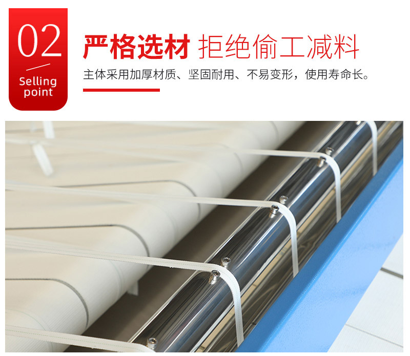 ● 高速自动送布,节省时间,提高工作效率,提高产量50%以上。降低蒸汽、电费人工运行成本,增加利润。