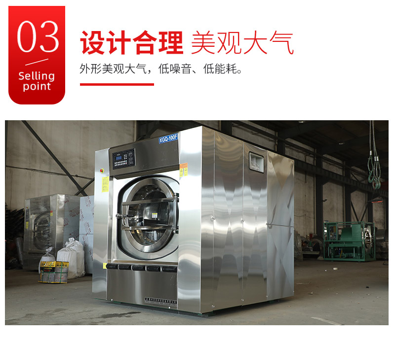 1、电脑控制、全自动、手动可选,洗涤容量大,洗净率高,噪音、振动小,外形美观。